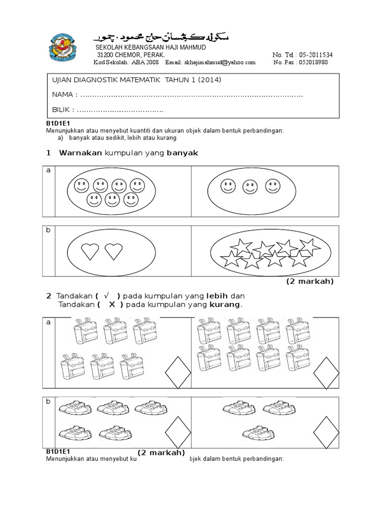 Kemudian anda memilih program studi sesuai dengan yang anda inginkan. 273664230 ujian saringan tahun 1 1 pdf. Ujian diagnostik matematik tahun 1. Kertas soalan ini mengandungi dua. Tandakan ( √ ) pada kumpulan yang banyak 1.